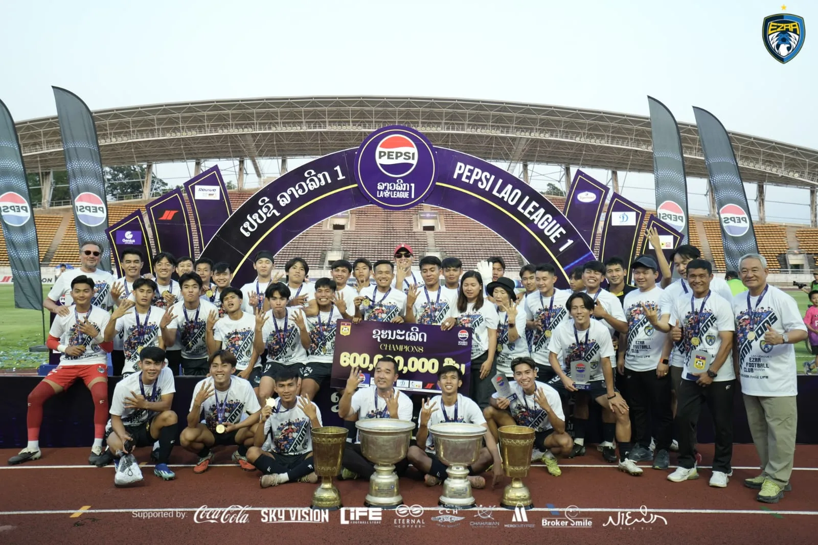 Sky Vision key sponsor to the EZRA FC known as a professional football club based in Vientiane, Lao PDR. A youth development academy. The club focuses on nurturing young Laotian talent. Last year, they secured their first top-flight in the Lao ligue 1, on the 14th of March 2026, they were crowned Champions for the second consecutive year